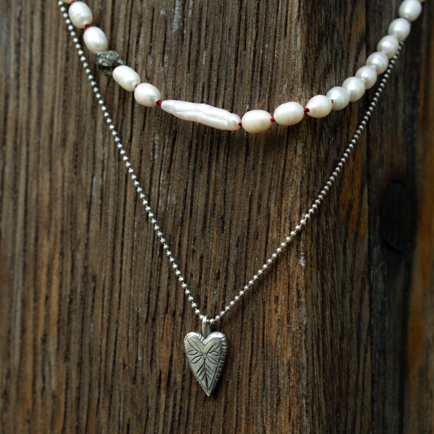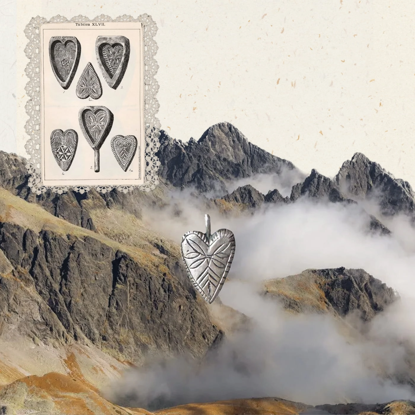 Zawieszka ma kształt serca - zaprojektowane tak, by ornament nie był jedynie dekoracją, a nośnikiem znaczenia. To biżuteria do noszenia blisko ciała, codziennie lub jako osobisty talizman.