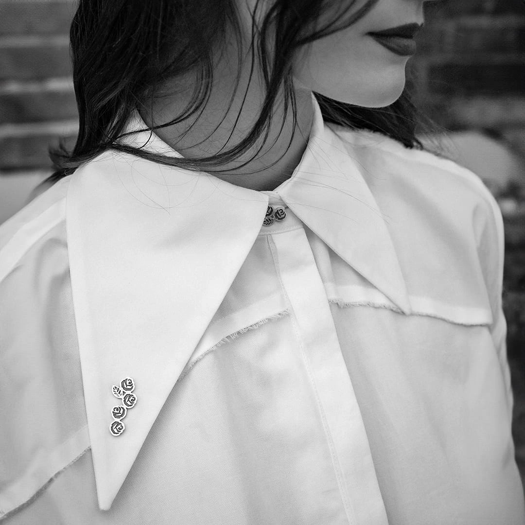 Broszka prosta w swej formie, idealna na klapę marynarki lub kołnierzyk.