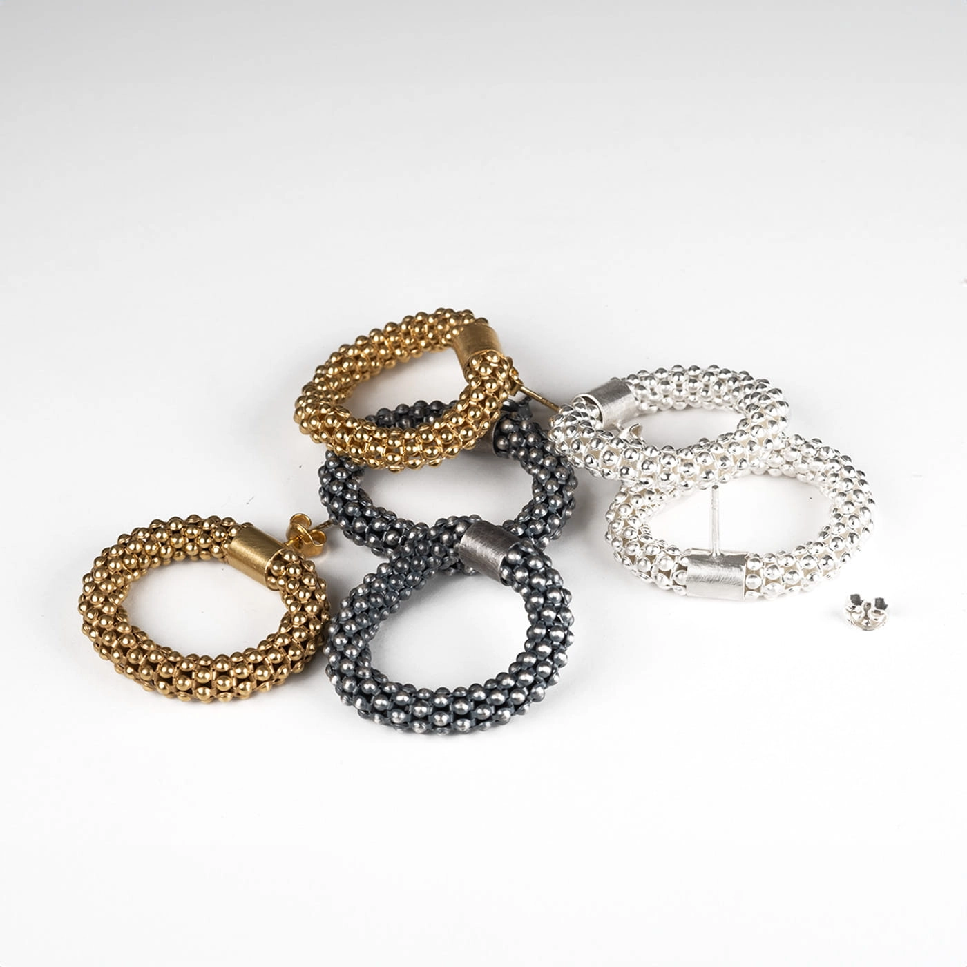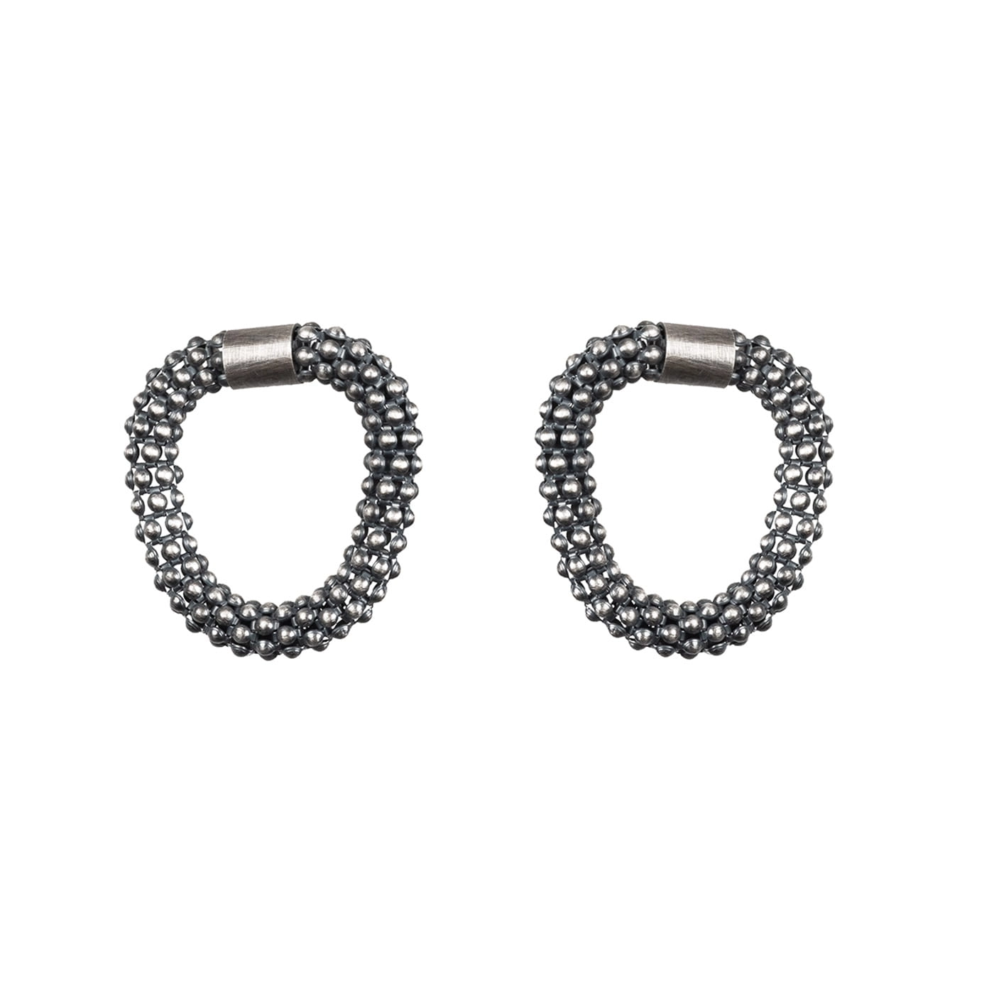 Kolczyki wykonane ze srebra próby 925, zaoksydowane by uzystakć grafitowy kolor srebra.