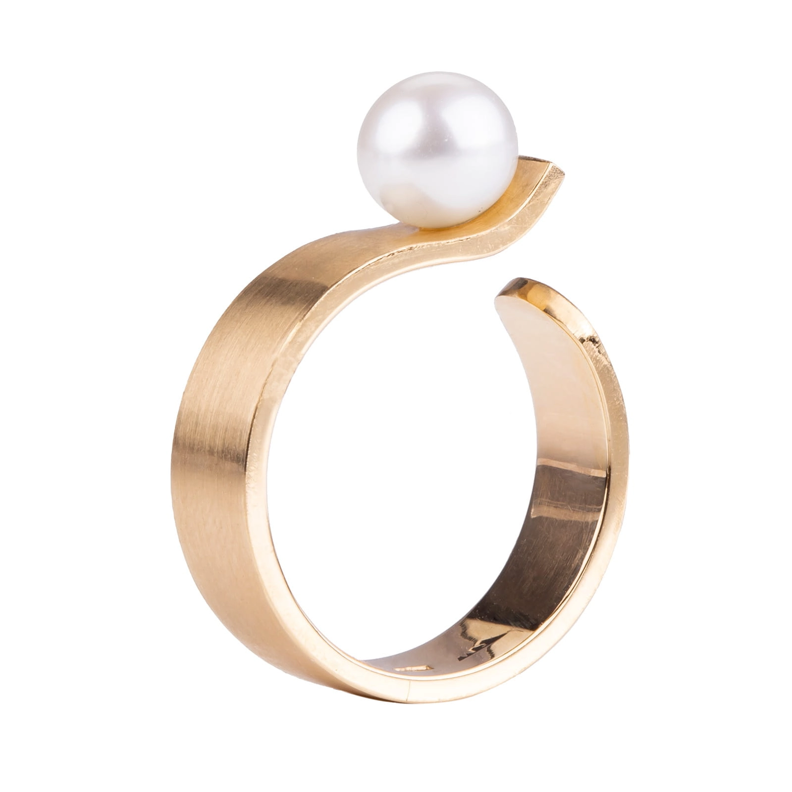 We offer a ring made of 14k gold with a cultured pearl (diameter 6mm/ 0,23 cal)