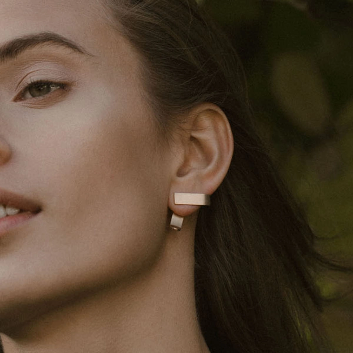 Earrings and pads from the Ribbon collection offer several wearing options. You can dress them in any way that you gonna enjoy, surprising and impressive every time you wear.