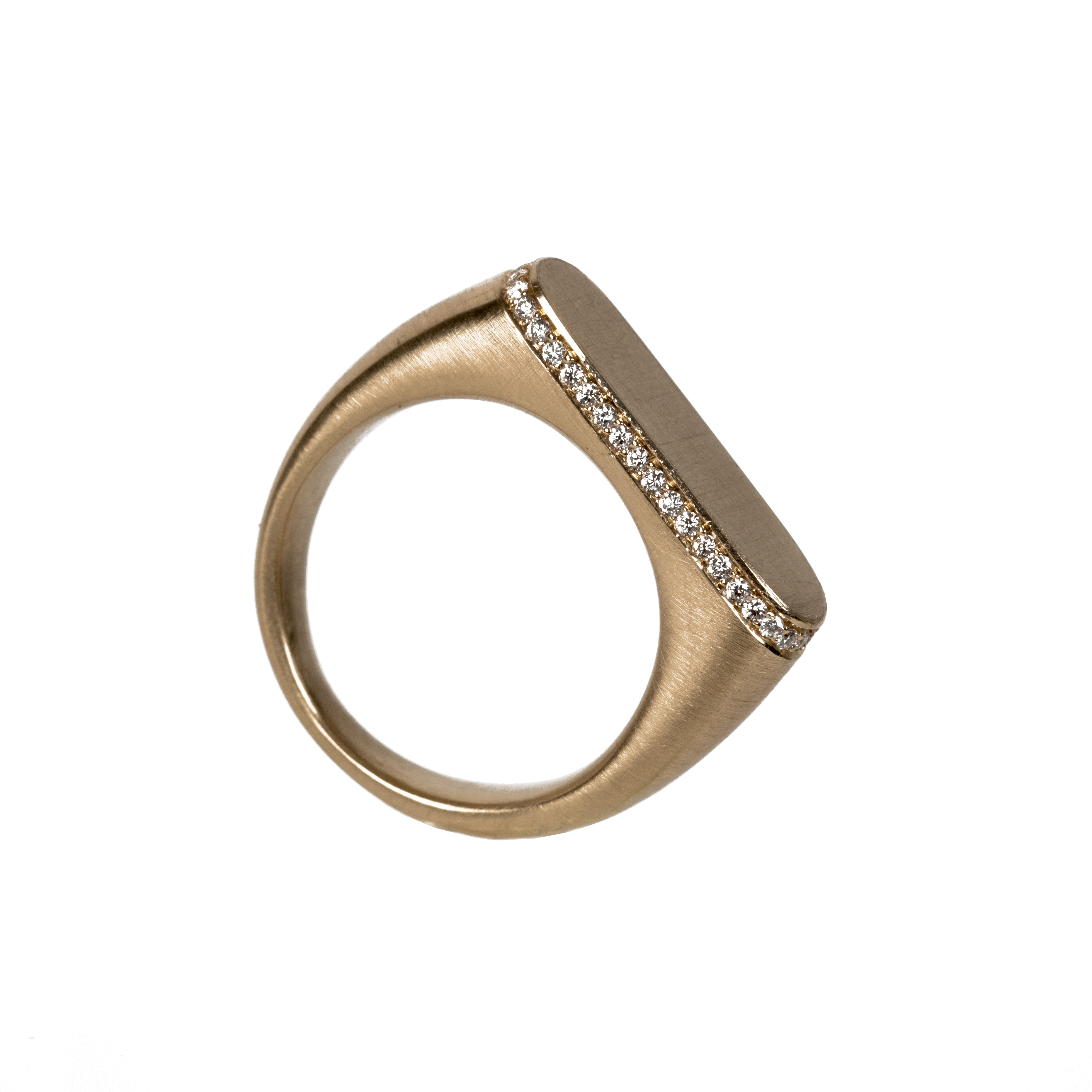 Sygnet pełny czyli stosunkowo ciężki bo wykonany ze złota 14 karatów czyli próba 585, 42 diamenty oprawione ręcznie pod mikroskopem VVS 0,2ct